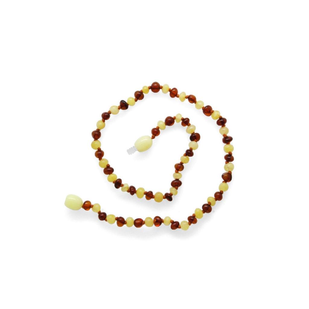 Медово-белое цветное ожерелье специальной серии с натуральным янтарным камнем в виде детских зубов