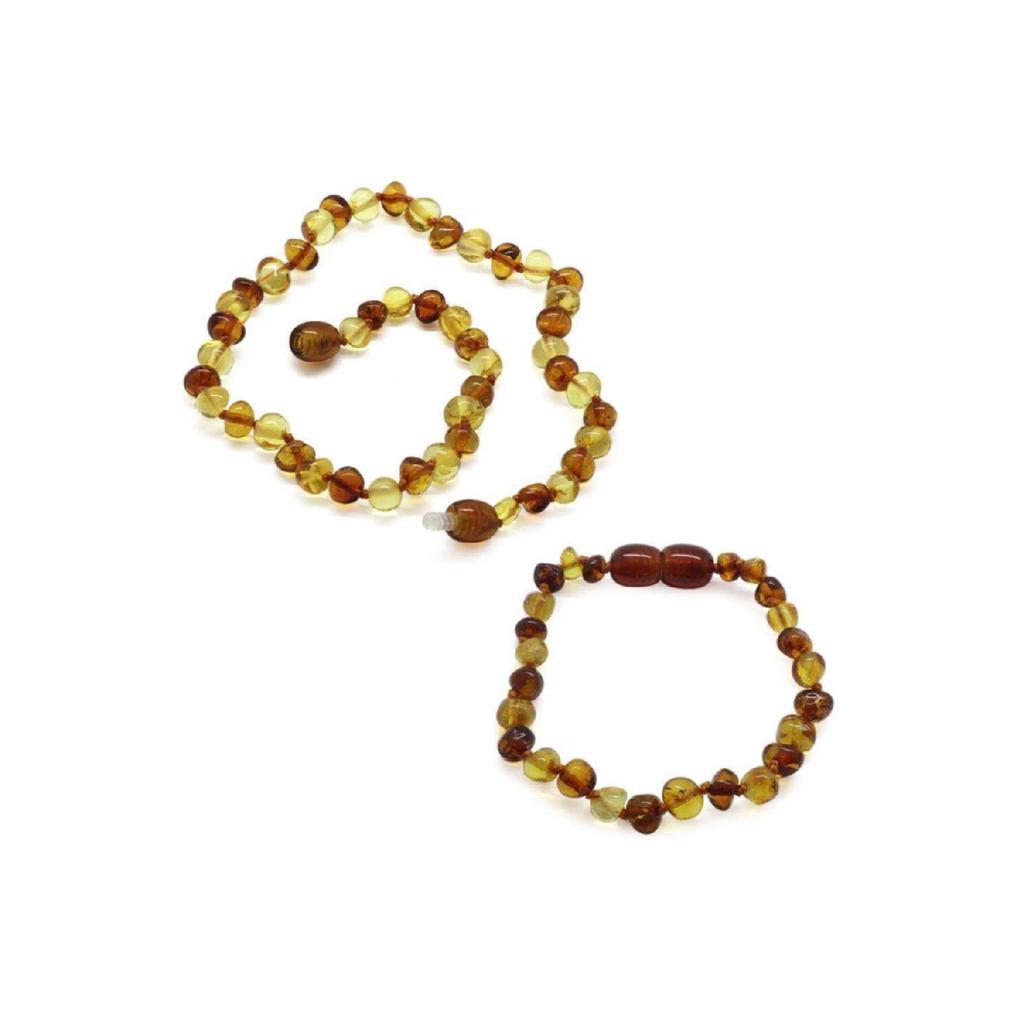Многоцветный оригинальный набор браслетов с ожерельем из янтарного цвета детских зубов