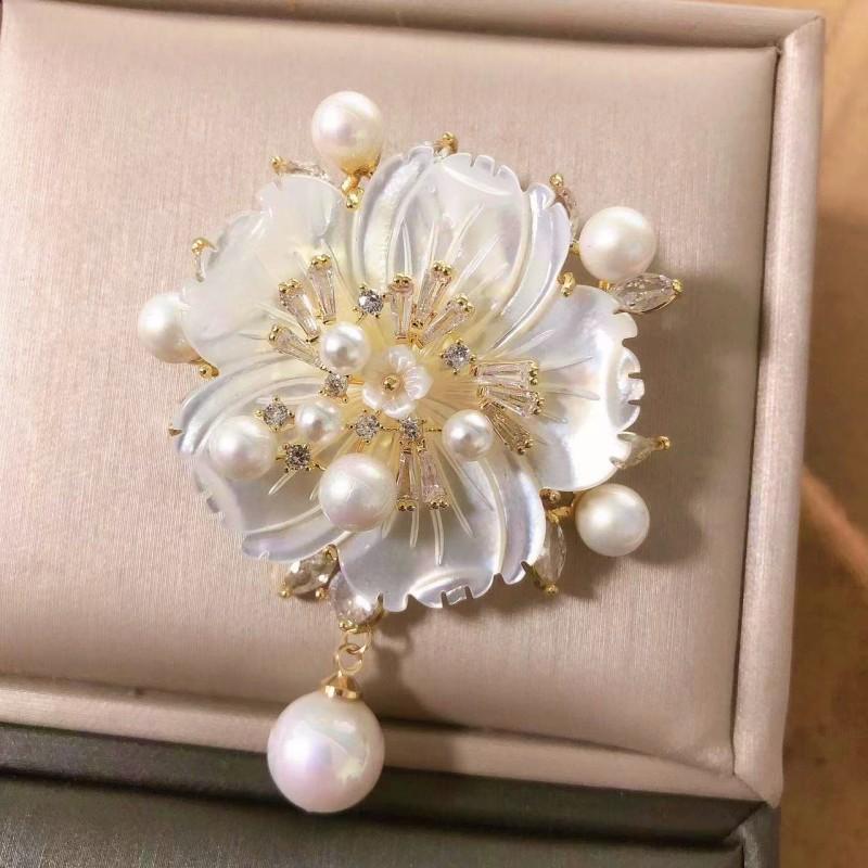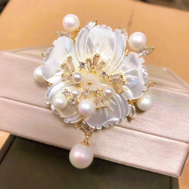 Роскошная брошь в виде ракушки, женская брошь с цветочным узором для костюма, брошь на булавке, аксессуары для торжественного платья