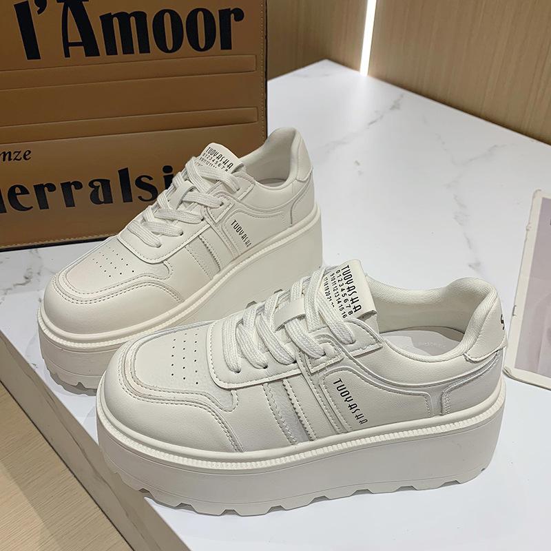 Белые туфли на платформе, женские новые универсальные спортивные туфли с увеличивающей рост стелькой, женские весенние туфли