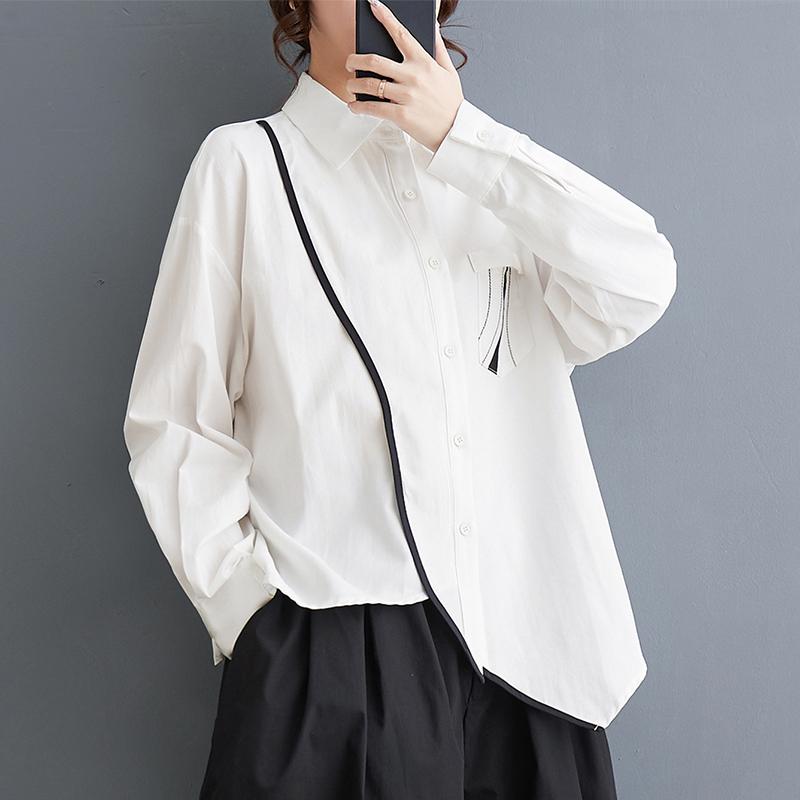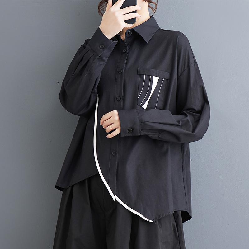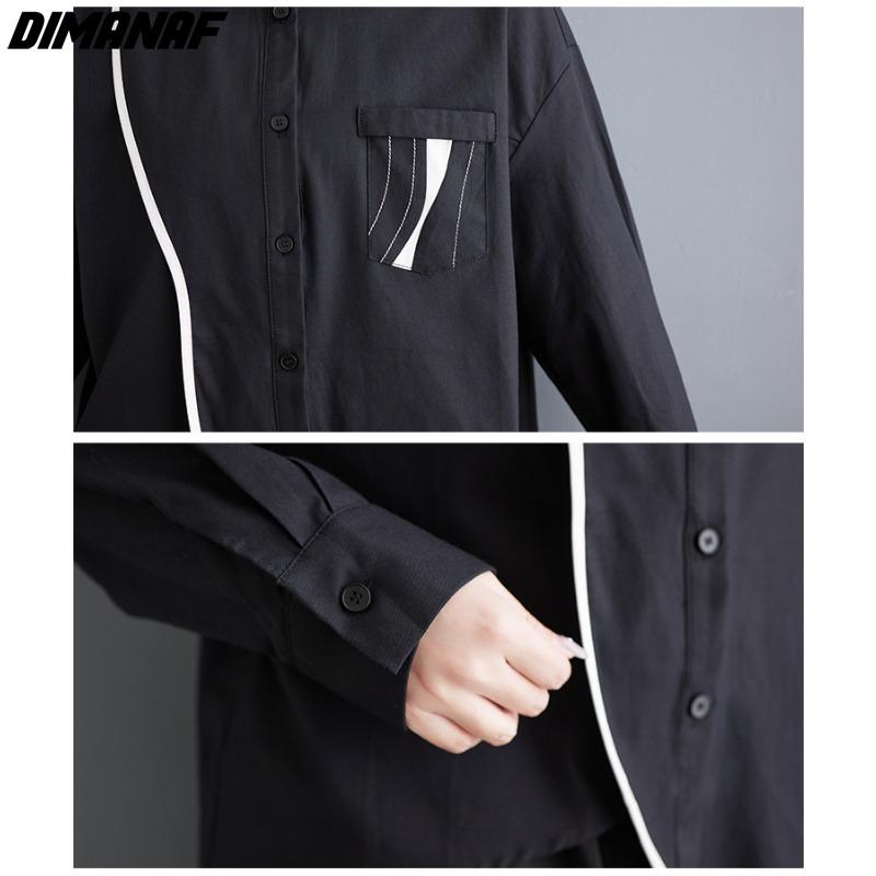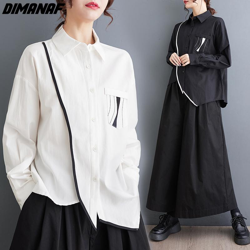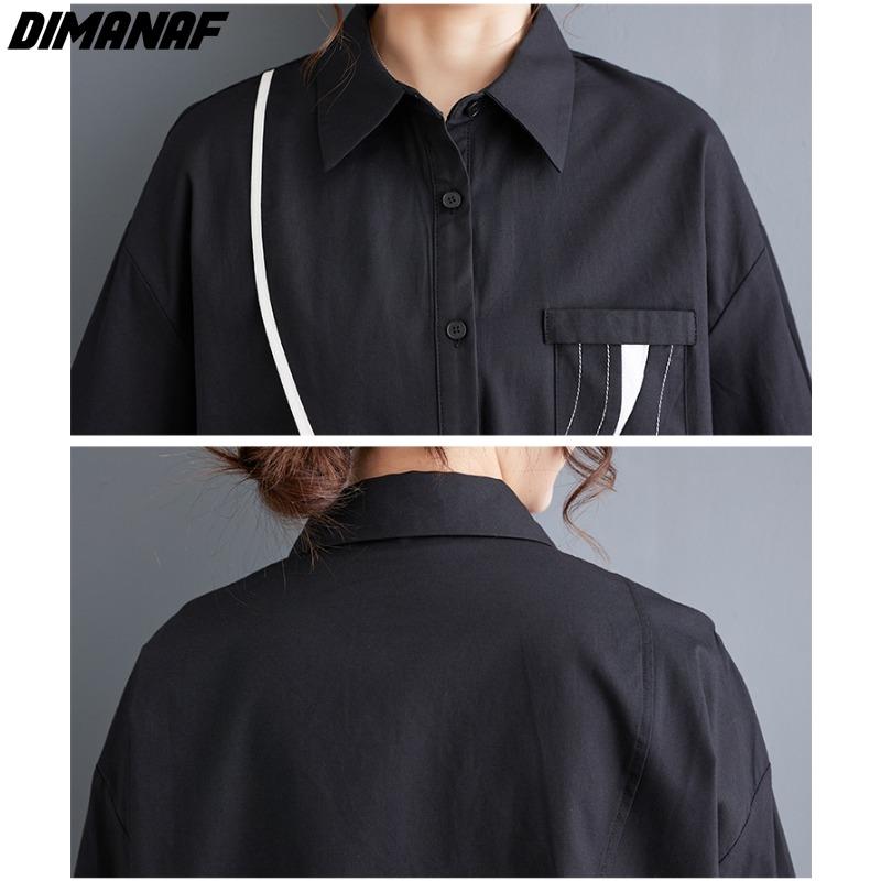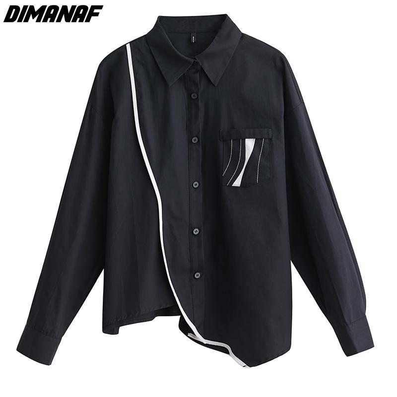DIMANAF Женская 2024 Большие размеры Весна Лето Новая рубашка большого размера с длинным рукавом Свободная базовая черная блузка на пуговицах Нерегулярные повседневные женские топы