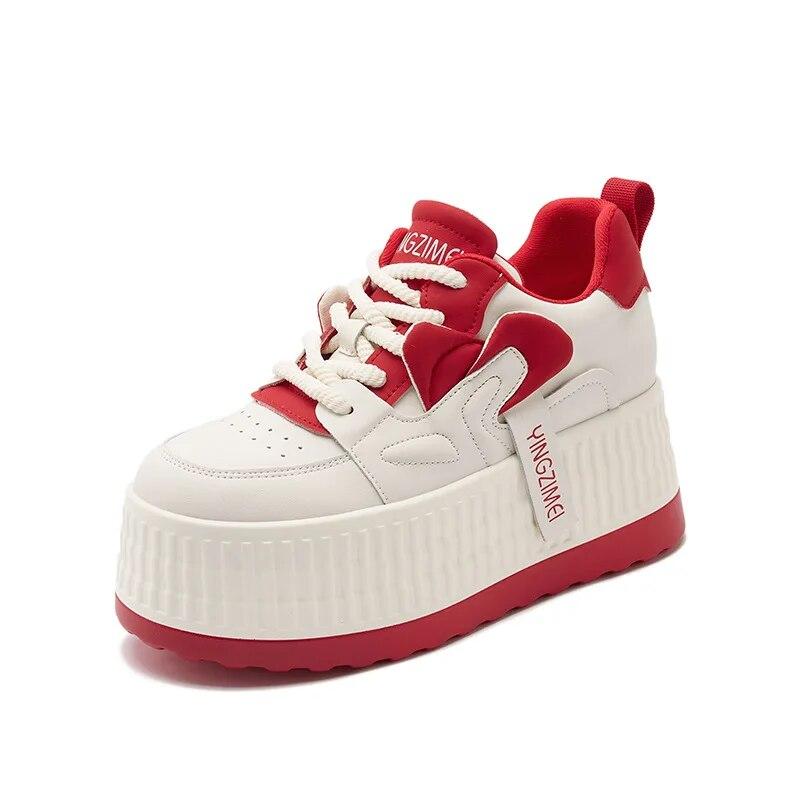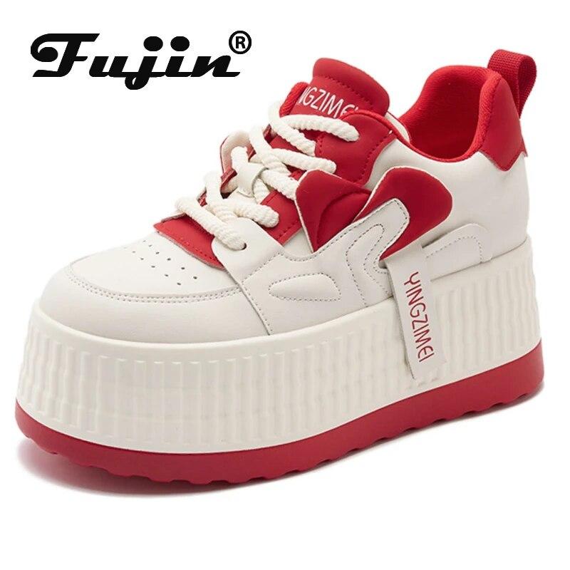 Fujin Весенне-осенняя обувь из микрофибры 8 см, массивные кроссовки на платформе, женская повседневная обувь на танкетке, женская модная обувь для скейтбординга