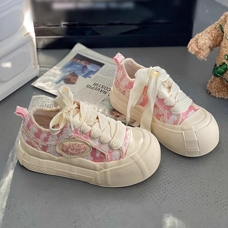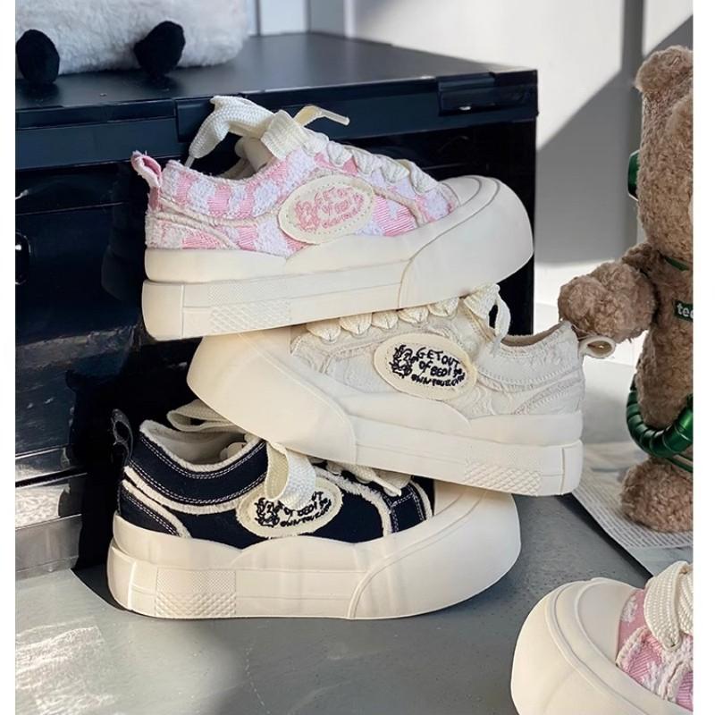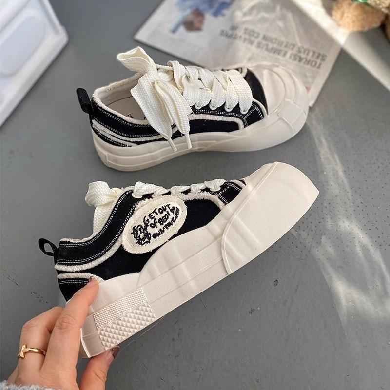 Новые женские парусиновые повседневные туфли с толстой подошвой и круглой головкой, интересный дизайн, классический стиль