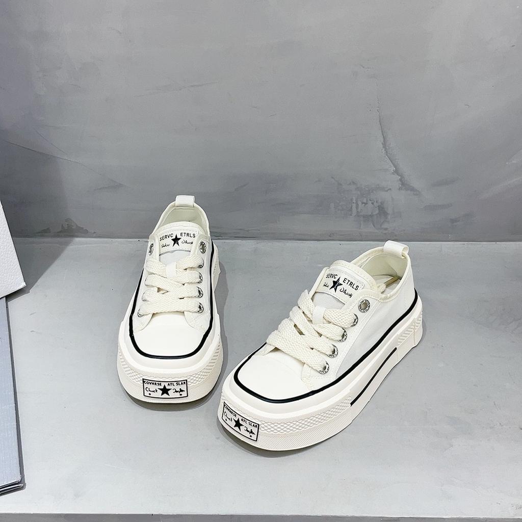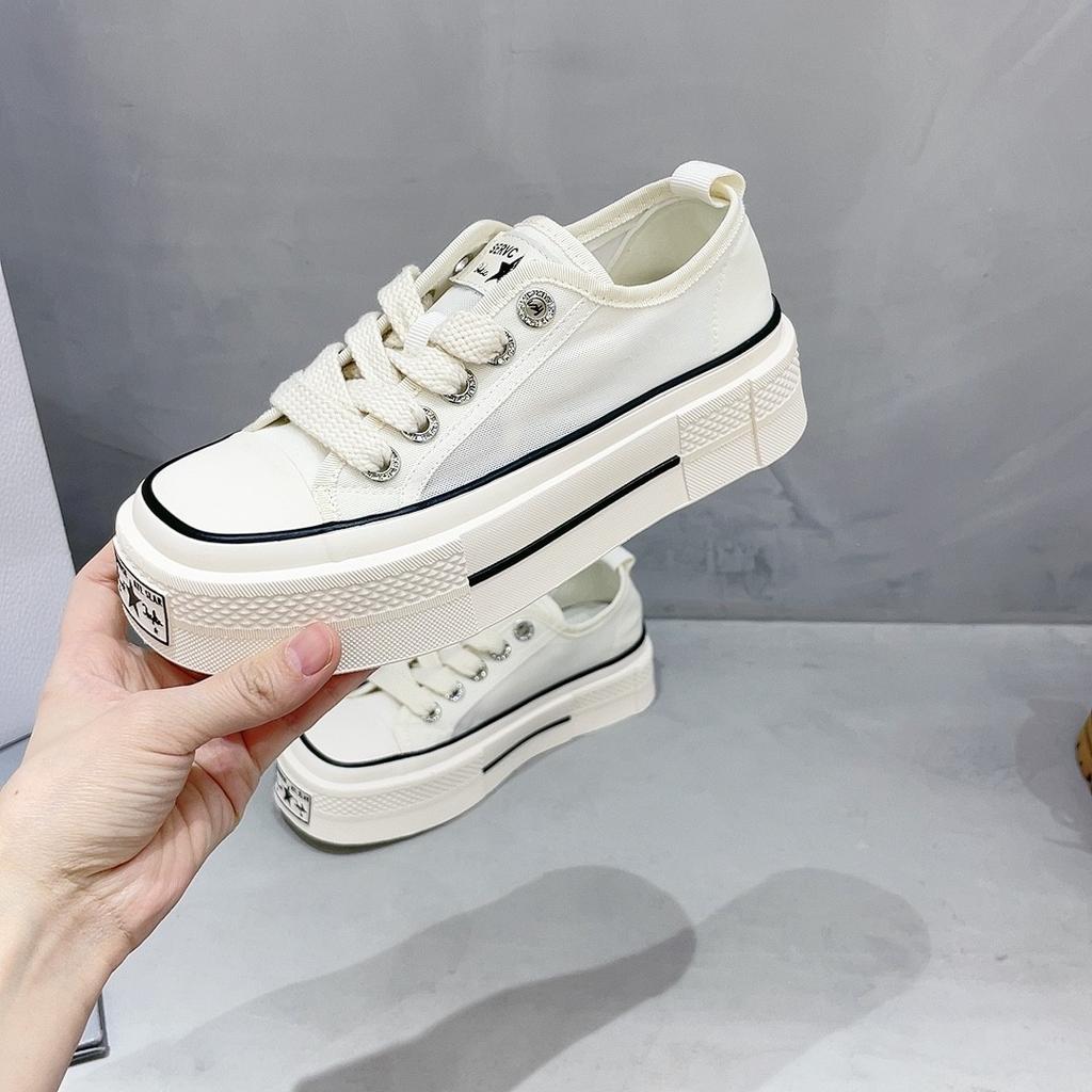 Женские парусиновые туфли на толстой подошве, новые весенне-летние универсальные спортивные повседневные белые туфли на платформе, туфли для доски