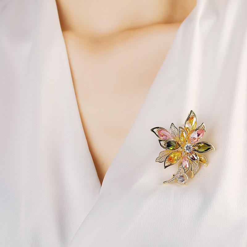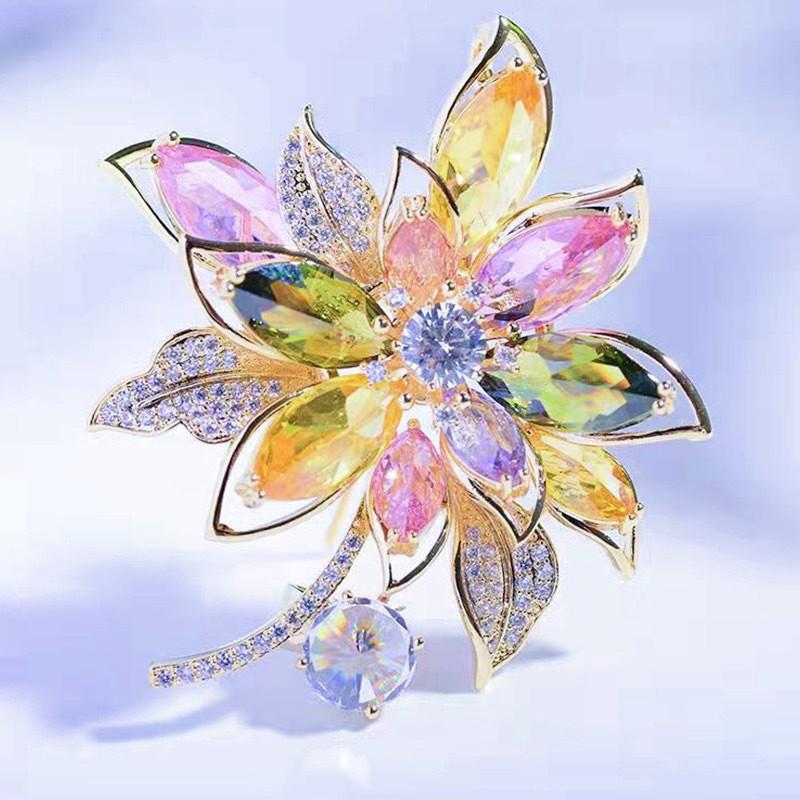 Современная цветная брошь из циркона с модным темпераментом, костюмным пальто, булавкой, цветочными аксессуарами для одежды и украшением корсажа.