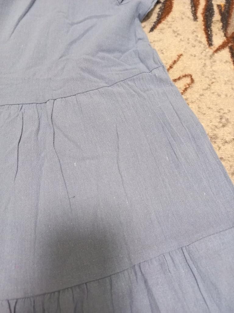Доброго времени суток. Ниже прилагаю фото всех дефетов. 1. Платье без всяких этикеток( размера, фирмы и т. д) 2.Материал платья оставляет желать лучшего ( всё в каких-то белых вкраплениях) , цвет не соответствует:на фото он голубой, по факту грязно-серого цвета. 3.И наконец размеры:объем груди 105,по факту 100,длина 102,по факту 97 Как-будто стиранная вещь, очень неприятно