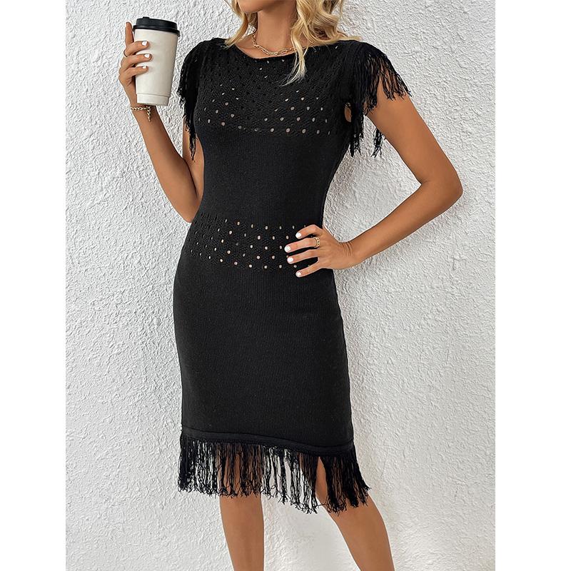 Новая весенне-летняя модная женская трикотажная длинная юбка с кисточками, однотонное платье, трикотаж