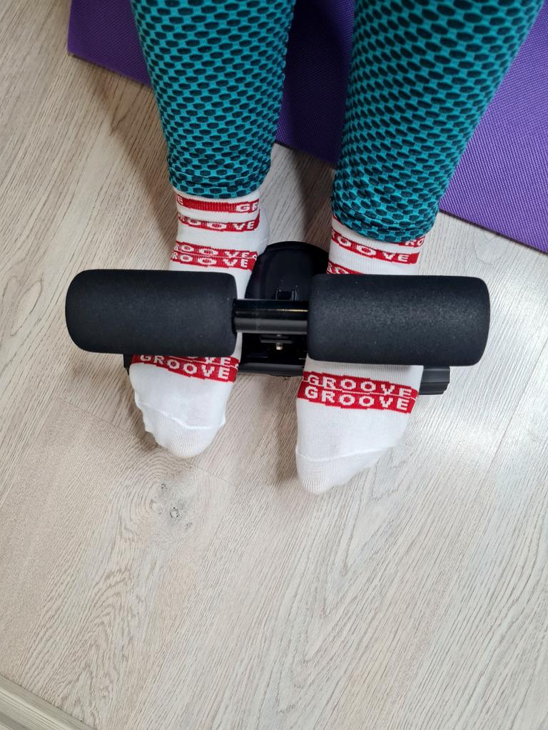 Ещё один спортивный гаджет, который поможет делать упражнения на пресс. Устройство с нехитрой, но надёжной конструкцией: с помощью вакуумной большой присоски тренажёр крепится к ровному напольному покрытию (для надёжности можно слегка смочить водой присоску с внутренней стороны), далее необходимо продеть ступни между двух горизонтальных труб, и ноги закреплены. По сути, устройство просто имитирует тренера, им который держит тебя за ноги. На тренажёре мягкие накладки, так что лодыжки не травмируются, ногам комфортно. Нижняя планка регулируется по высоте, и её можно подстроить под себя. Сам тренажёр крепкий, основание металлическое.