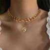 EN очаровательное модное многослойное ожерелье золотого цвета с толстой цепочкой и замком, кулон, ожерелье 2022, ювелирные изделия, винтажное колье-колье с монетами для женщин