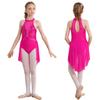 Детское блестящее сетчатое лоскутное трико с блестками для девочек, платье с вырезом на спине, платья без рукавов для фигурного катания, лирическая танцевальная одежда