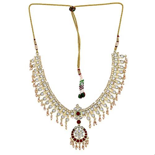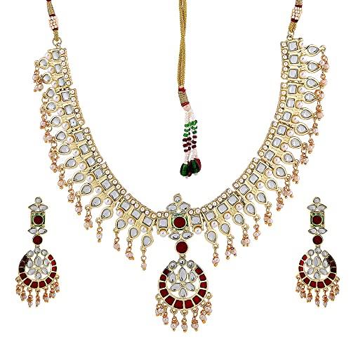 Женское колье и серьги из традиционного жемчуга кундан от Estele поможет вам выглядеть уверенно и просто как на рабочем месте, так и на прогулке.. Он имеет блестящую и привлекательную отделку, которая придает действительно гламурный оттенок вашему образу.. Добавьте эту классическую вещь вместе с рабочей одеждой или нарядом в стиле вестерн, чтобы выглядеть красиво.