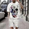 Летняя мужская футболка с принтом черепа, комплект уличной одежды на тему Хэллоуина, свободные дышащие футболки большого размера Y2K, шорты с короткими рукавами и шорты