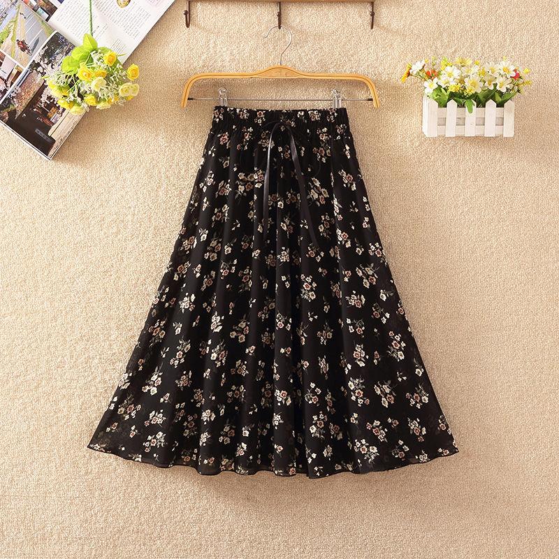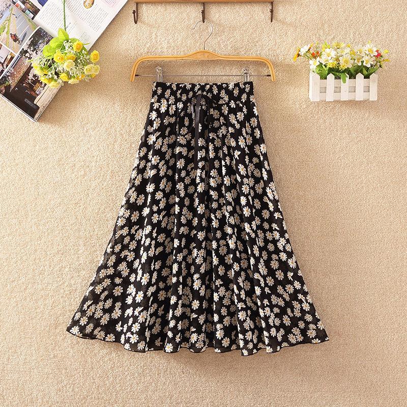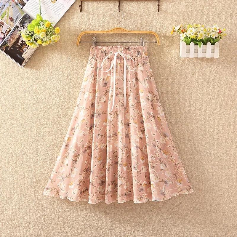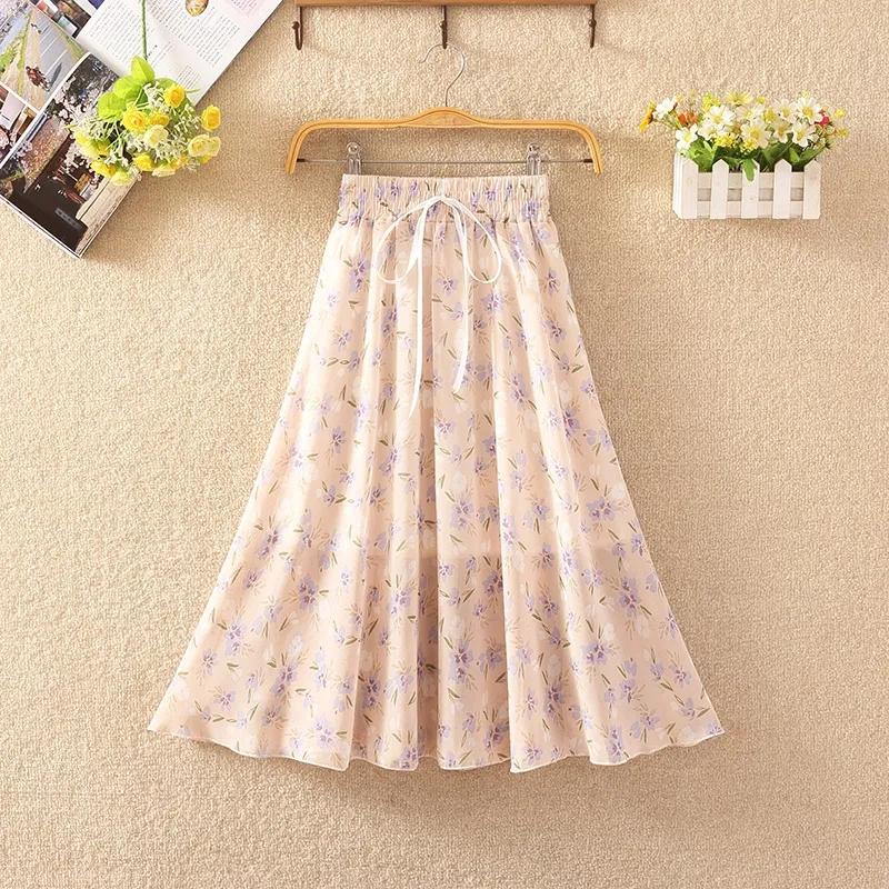 Шифоновая плиссированная юбка с цветочным принтом и эластичной талией, летняя женская юбка трапециевидной формы средней длины с высокой талией и драпировкой, платье феи