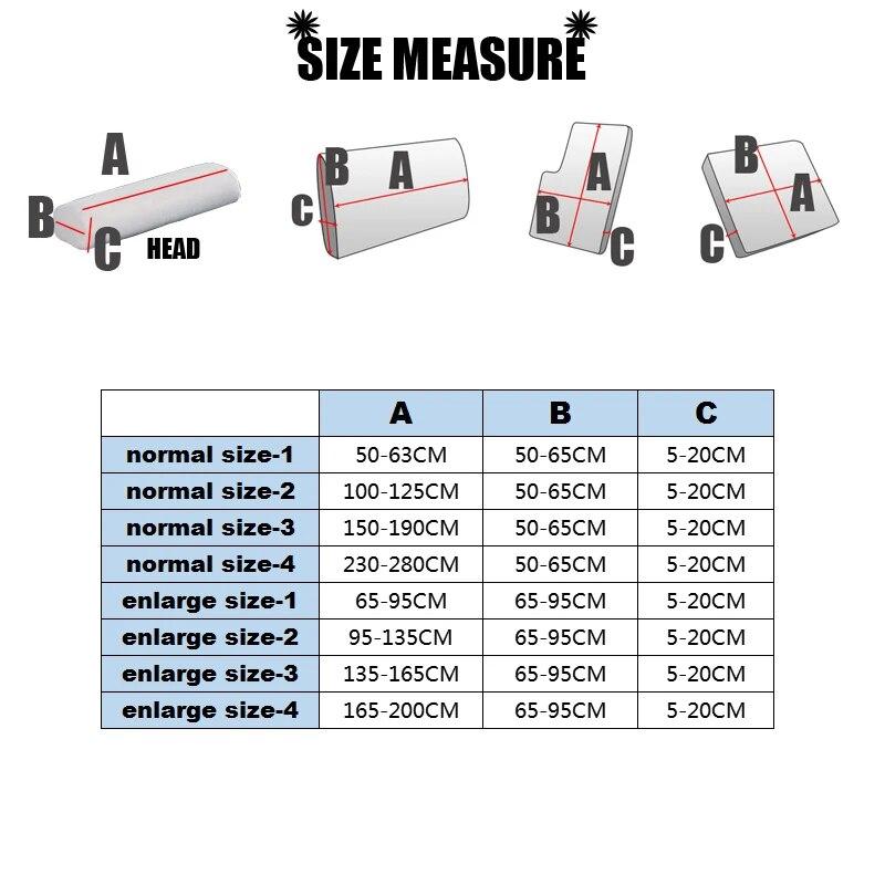 Длина 160-190 см, ширина 95-120 см, высота 5-20 см.