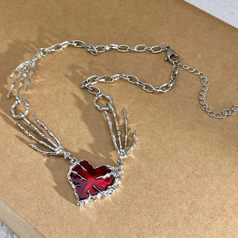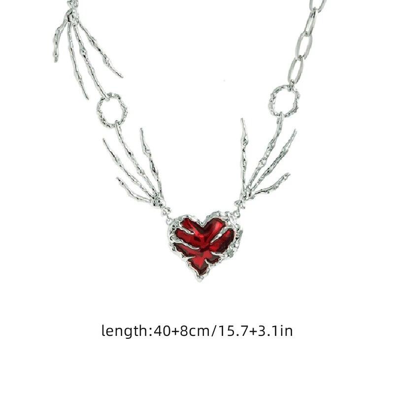 Готическое ожерелье с когтями призрака и красным сердцем, нерегулярное темное ожерелье с цепочкой Love Love, унисекс, панк, Harajuku, гот, ожерелье с подвеской в виде большого сердца