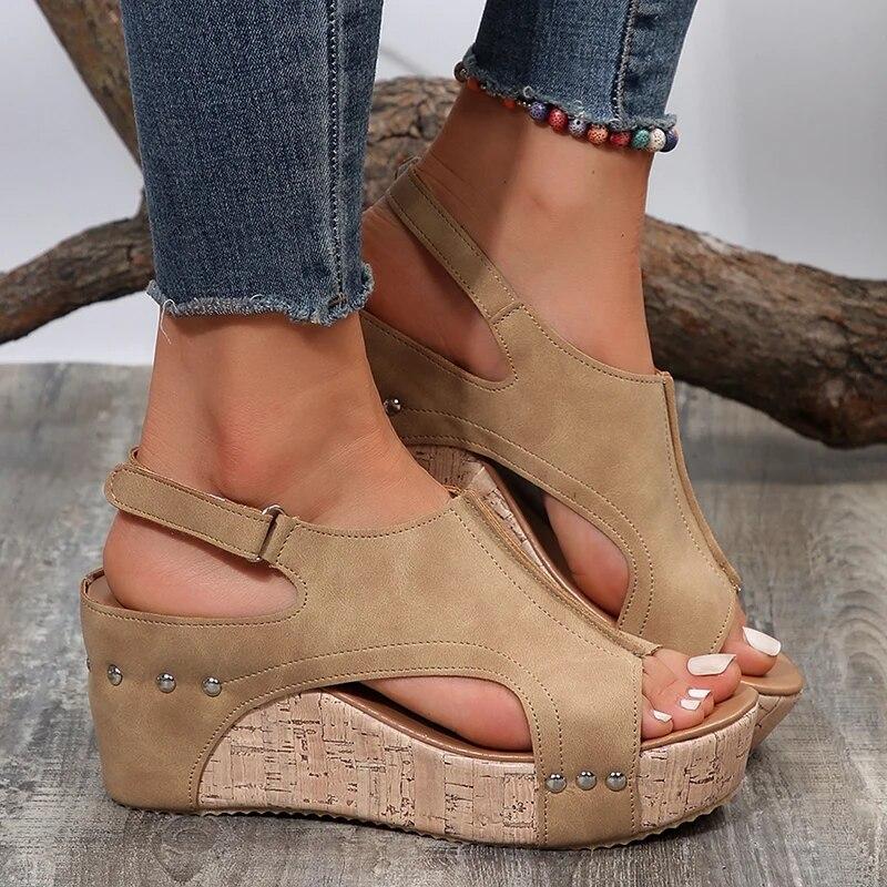 Женские сандалии на танкетке с толстой подошвой в стиле ретро, лето 2024, летние сандалии на массивной платформе с ремешком на щиколотке, женские пляжные туфли размера плюс 43