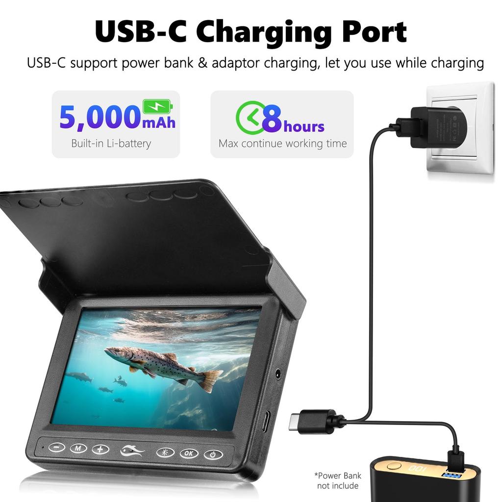 2024 MOQCQGR News Аккумулятор 5000 мАч Камера для подводной рыбалки для рыболовной комнаты 4,3-дюймовый эхолот с ИК-подсветкой