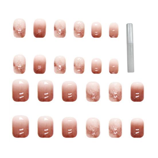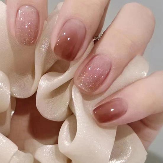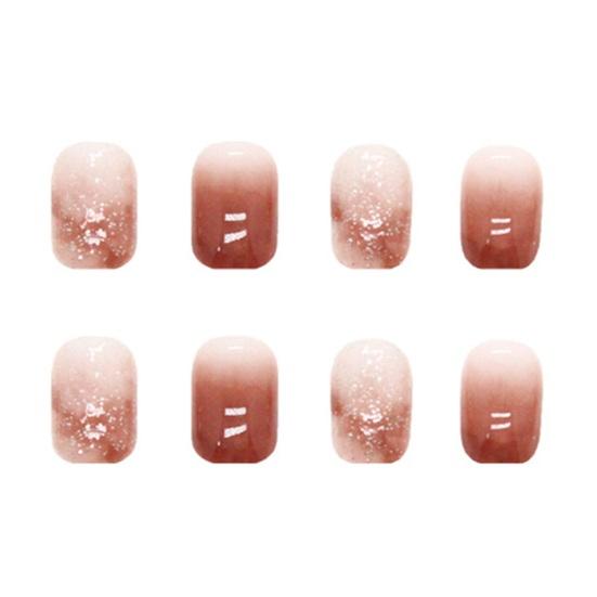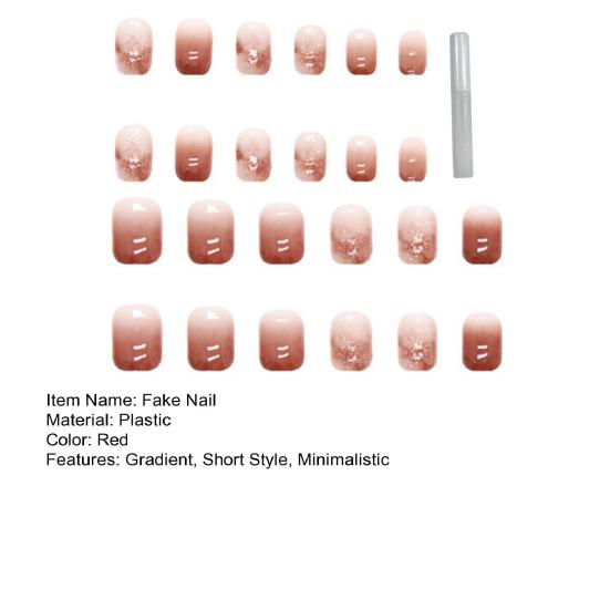 Легкий градиентный накладной ноготь Быстрый легкий красно-коричневый маникюр Короткий стиль Минималистичный элегантный накладной ноготь
