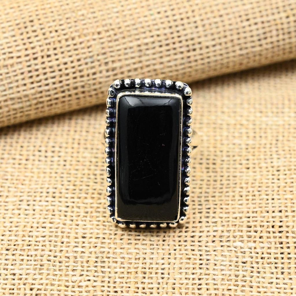 Ювелирное кольцо ручной работы с ослепительным черным ониксом из твердого серебра 925 пробы