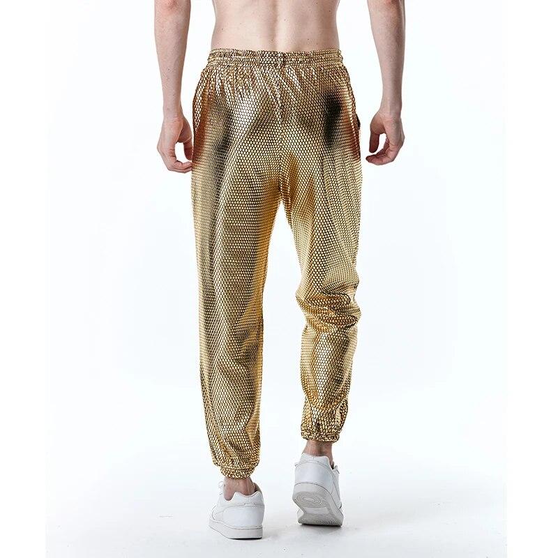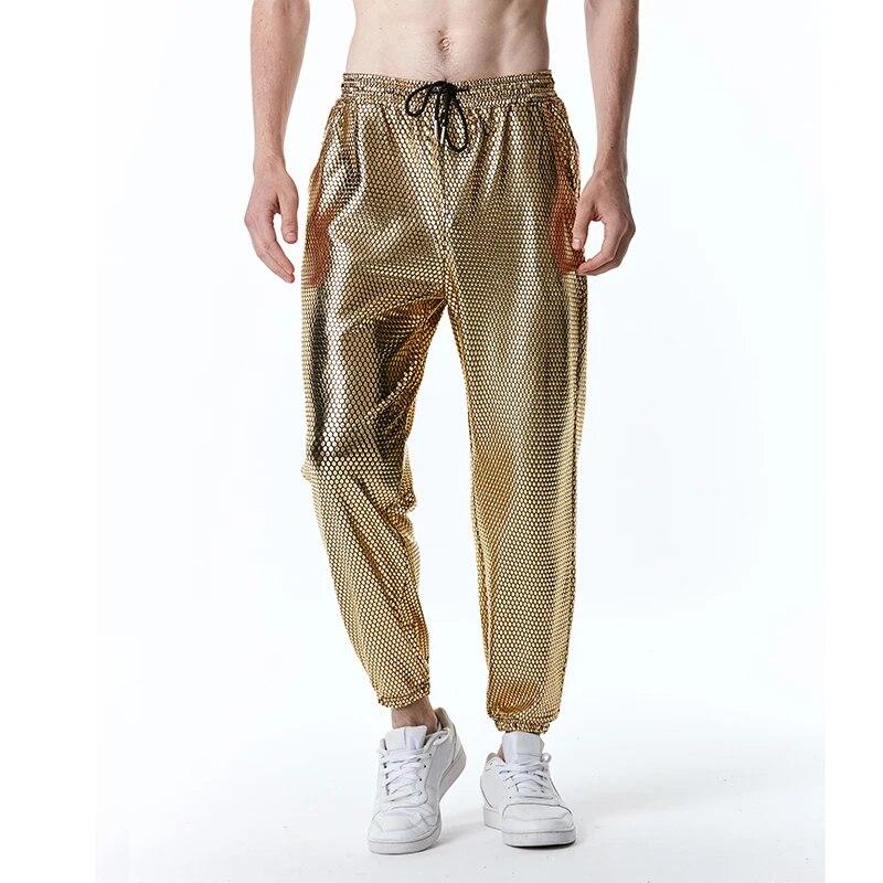 Мужские блестящие золотые рыбьи чешуи цвета металлик, спортивные штаны для бега, брюки для дискотек, мужские брюки для ночного клуба, сценической вечеринки, уличная одежда