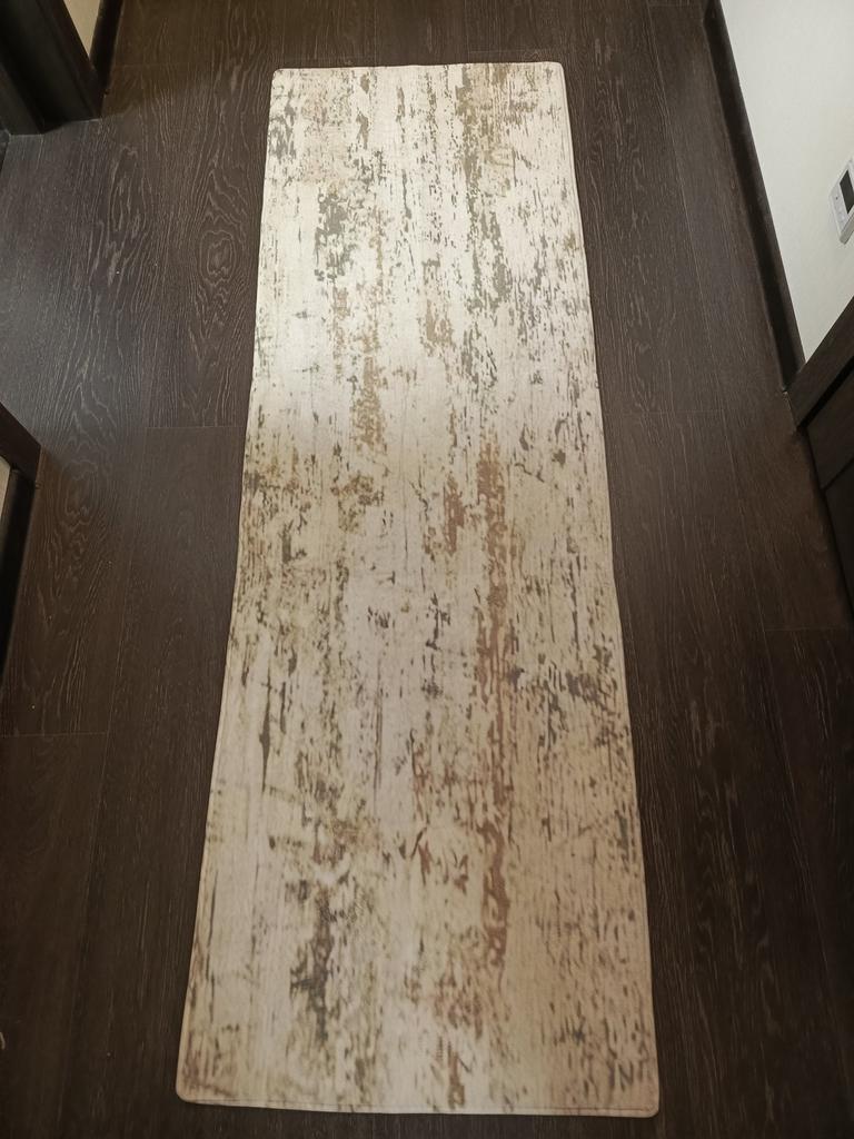 Коврик супер. Мягкий. Размер соответствует. Но в прихожую его жалко класть. Он как велюроаый сверху. Внизу прорезиненый. Постелила к сыну в комнату к кровати.
