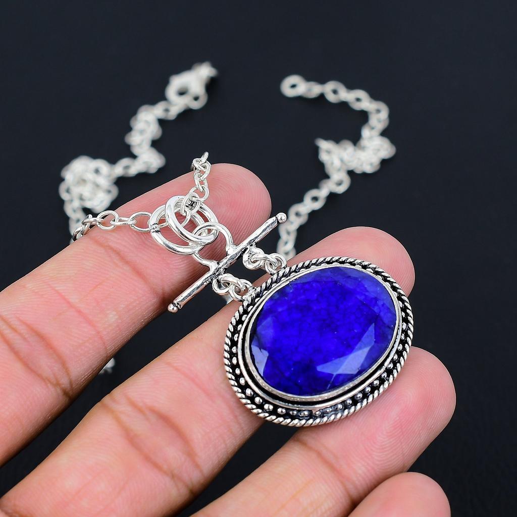 Сапфир(Смоделированный) Ювелирный кулон ручной работы из стерлингового серебра 925 пробы с драгоценными камнями 2,17 дюйма