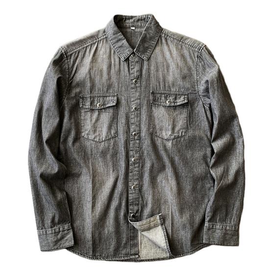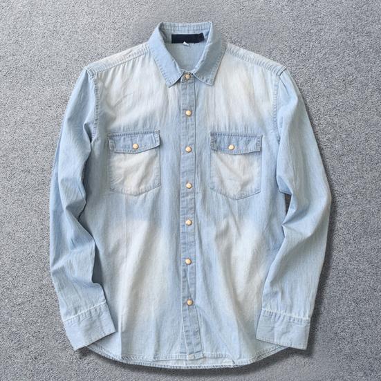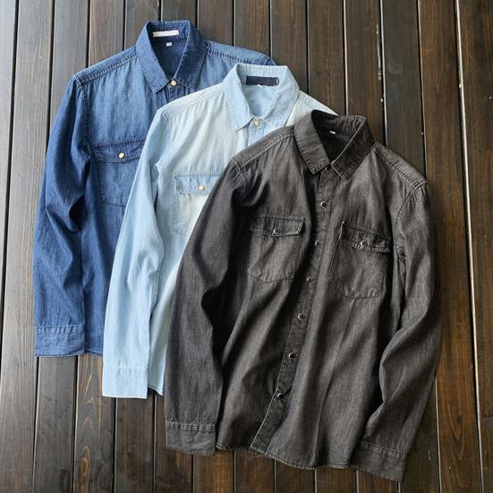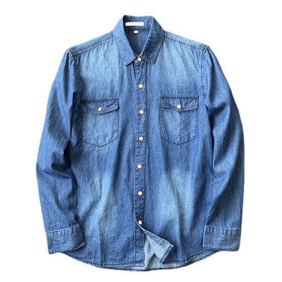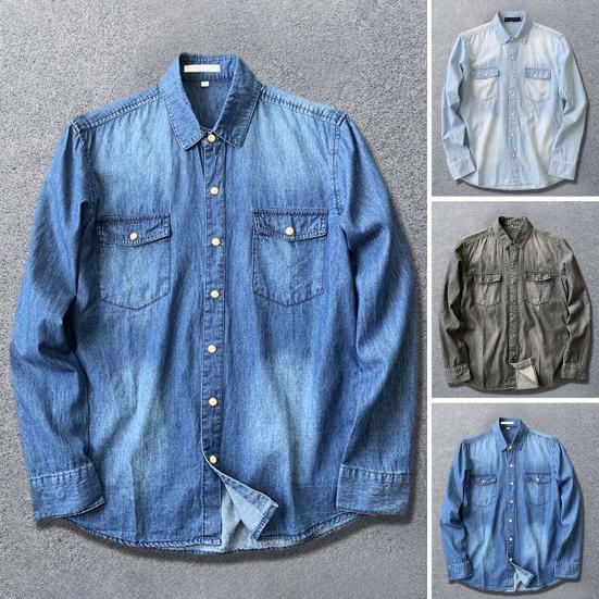 Мужская рубашка, однотонная, свободная, однобортный кардиган с длинными рукавами, теплая осенняя джинсовая рубашка с отложным воротником средней длины для повседневной носки