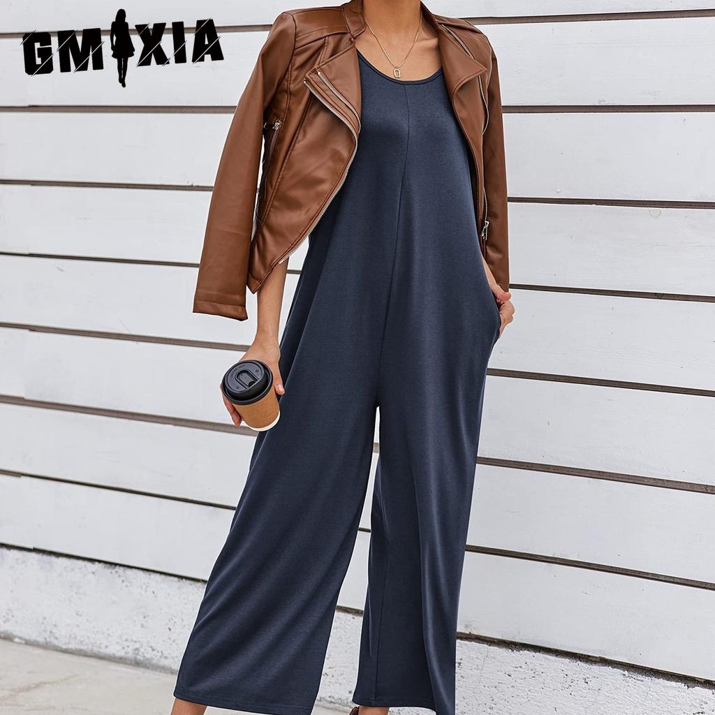 GMXIA Женские модные повседневные однотонные удобные и классные цветные принты, летние и весенние брюки с подтяжками и U-образным вырезом без рукавов, комбинезоны и комбинезоны