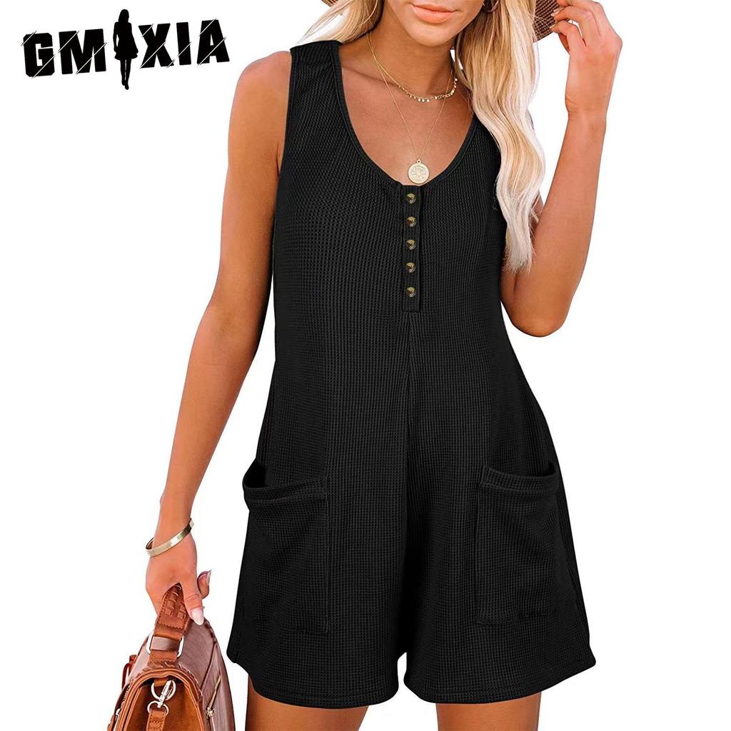 GMXIA Женский модный повседневный жилет на пуговицах с карманами, однотонный принт, летние весенние брюки без рукавов, комбинезоны и комбинезоны