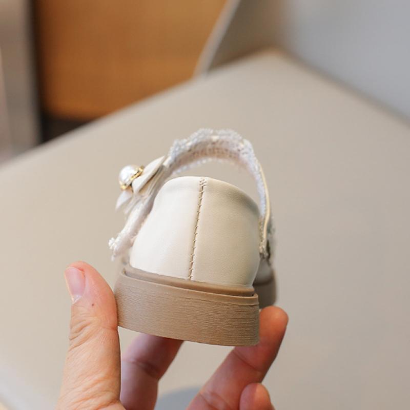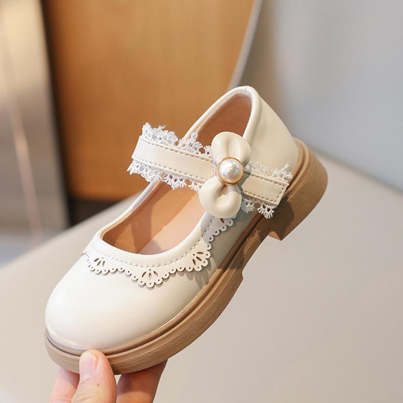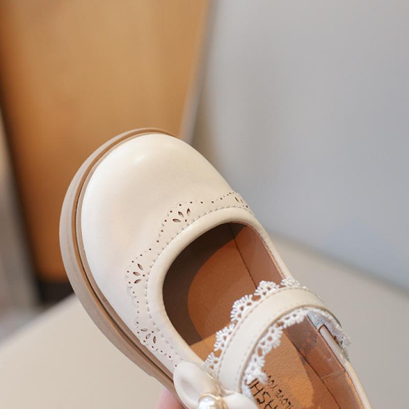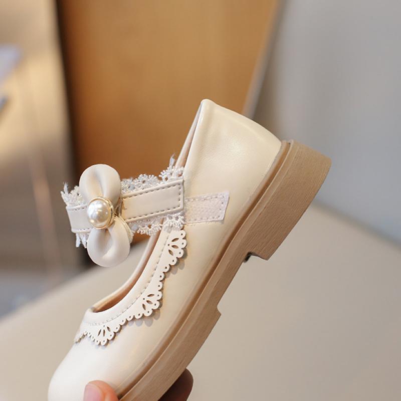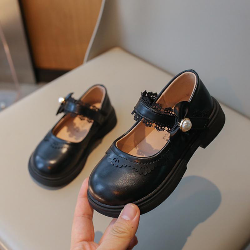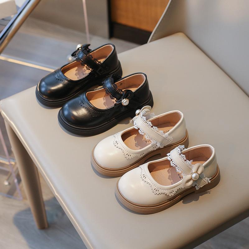 Кожаная обувь для девочек, новые детские туфли принцессы, весенне-осенний британский стиль, однотонные маленькие одинарные туфли на мягкой подошве с бантом и жемчугом