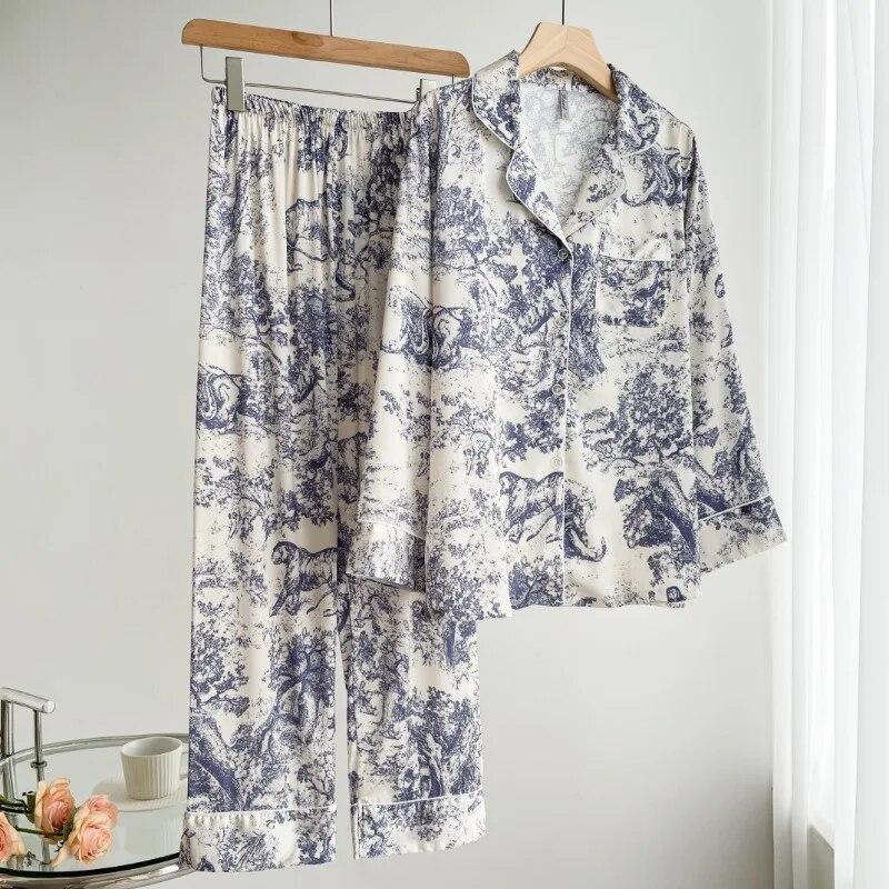 Весенние новые пижамы из ледяного шелка с чернильным принтом для женщин, домашняя одежда с длинными рукавами и лацканами — купить товар онлайн с бесплатной доставкой по всему миру!
