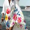 Весенне-летняя мода женское свободное повседневное платье-рубашка с длинным рукавом элегантное женское повседневное белое однобортное платье с принтом и лацканами