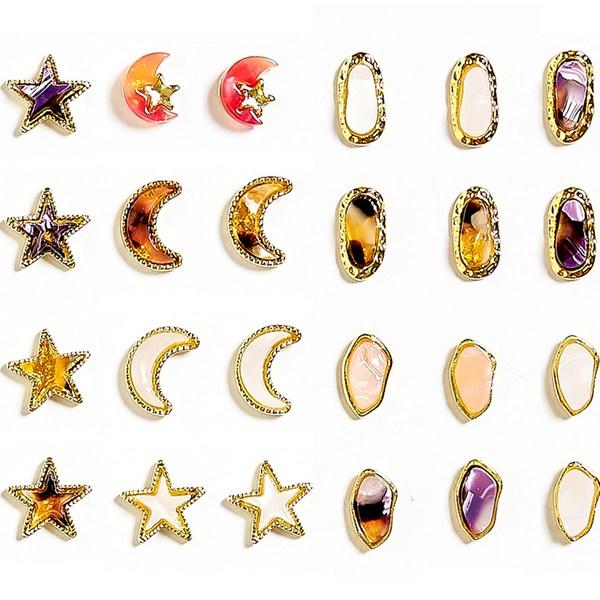 Набор для ногтей May Brown Stone Parts Moon Oval Mother of Pearl, 12 шт., разные цвета, 1 комплект