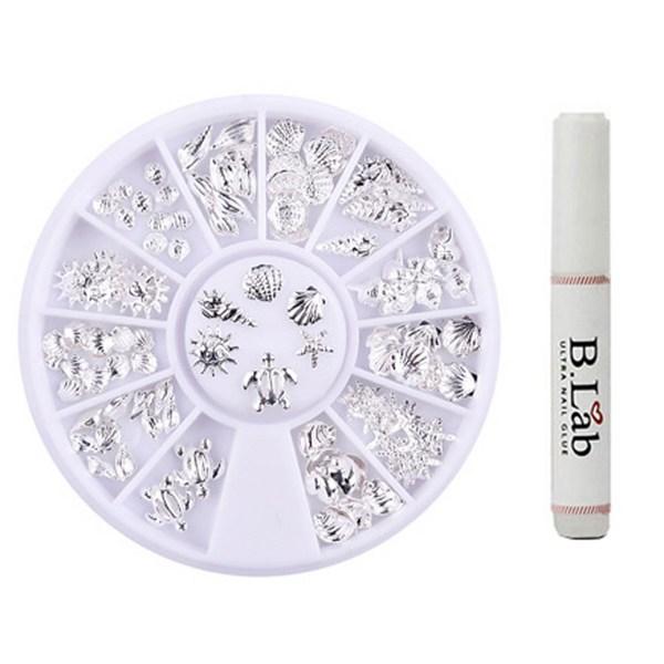 Babli Self Nail Silver Charm Stone Bada Parts + Glue, Разноцветные, 1 Набор — купить товар онлайн с бесплатной доставкой по всему миру!