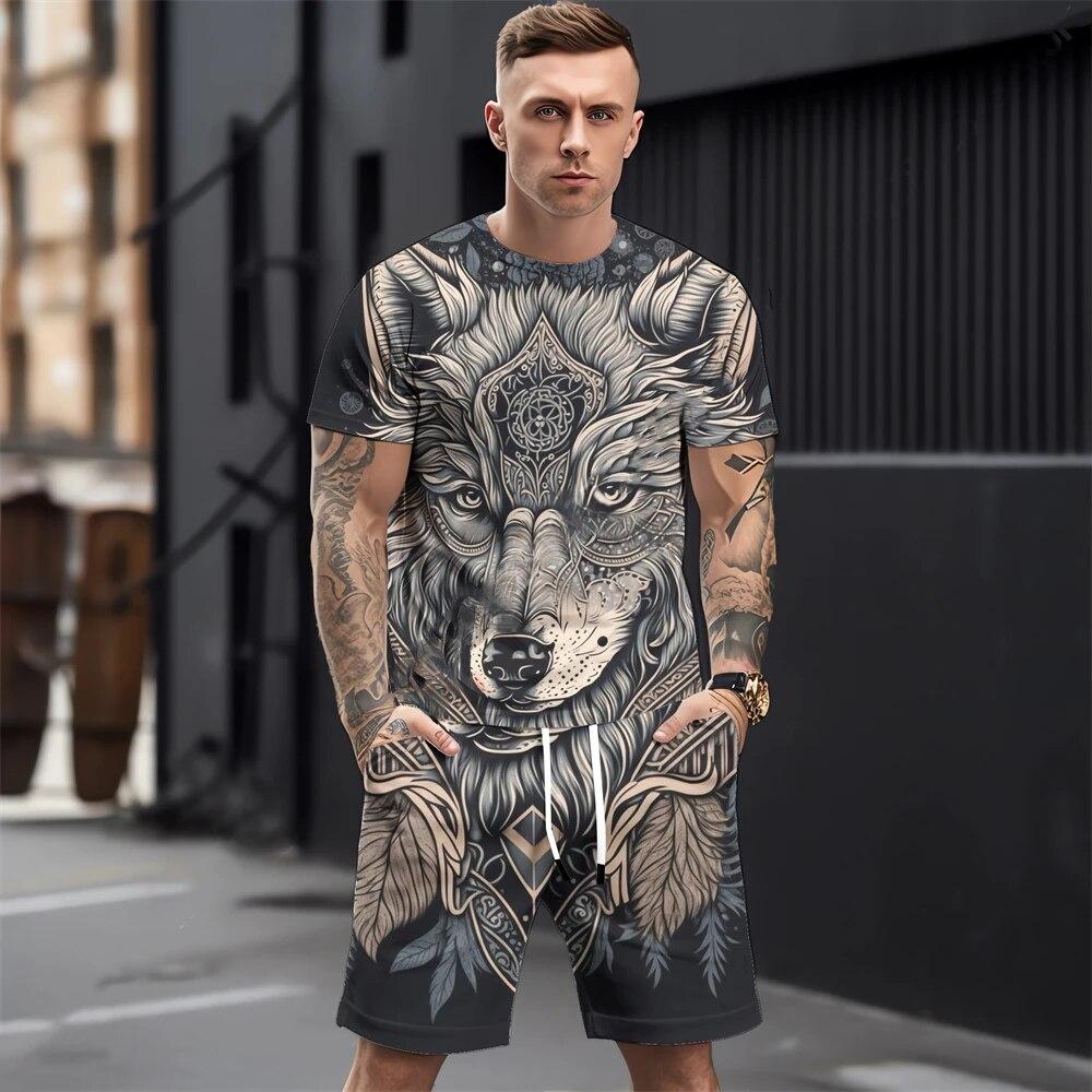 Летние мужские комплекты футболок, модная одежда с 3D принтом животных, необходимая одежда для мужчин, повседневный спортивный костюм, спортивный костюм из двух предметов для бега, спортзала