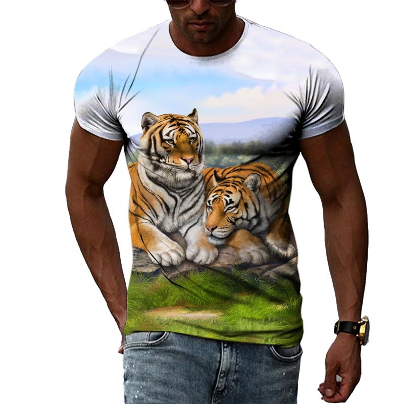 Свободные летние топы для мужчин, одежда больших размеров, футболка с 3D принтом животных, футболки с узором тигра для пар, топ с короткими рукавами и круглым вырезом, дышащие мужские рубашки