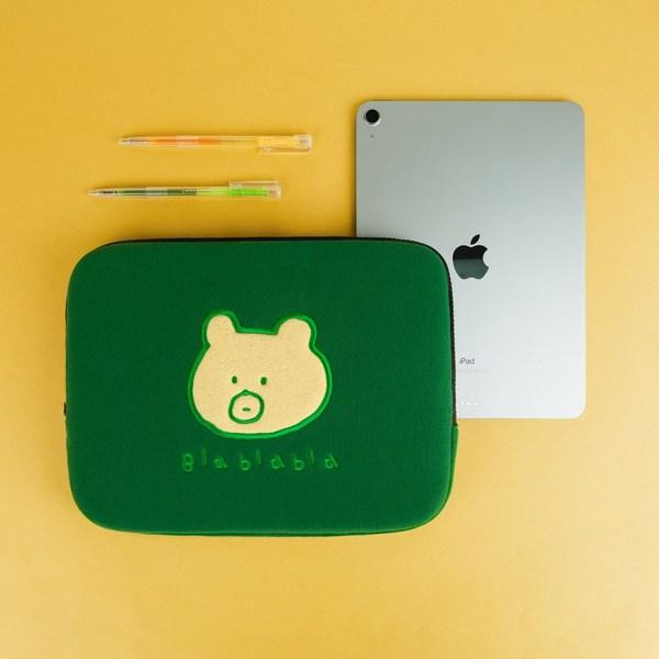 Сумка для ноутбука с вышивкой бла-бла-мишка, зеленая