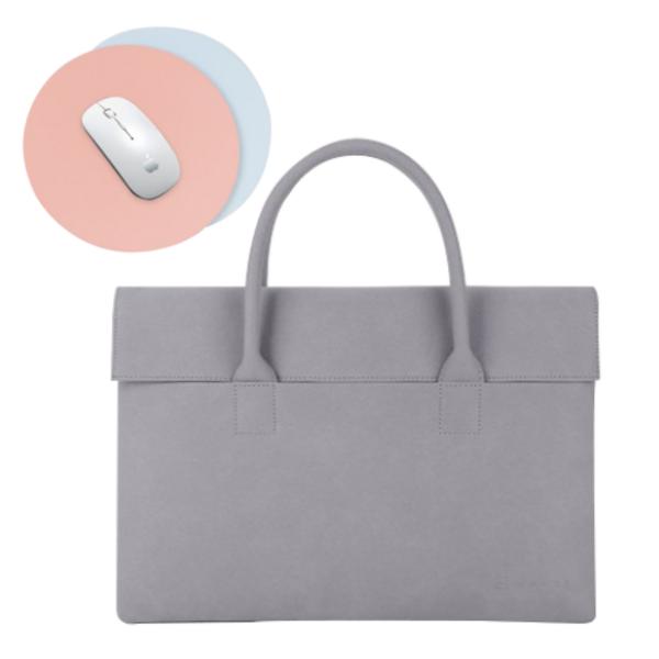 Кожаный коврик для мыши + сумка для ноутбука Lumiere Чехол для MacBook, дымчато-серый