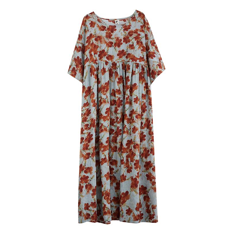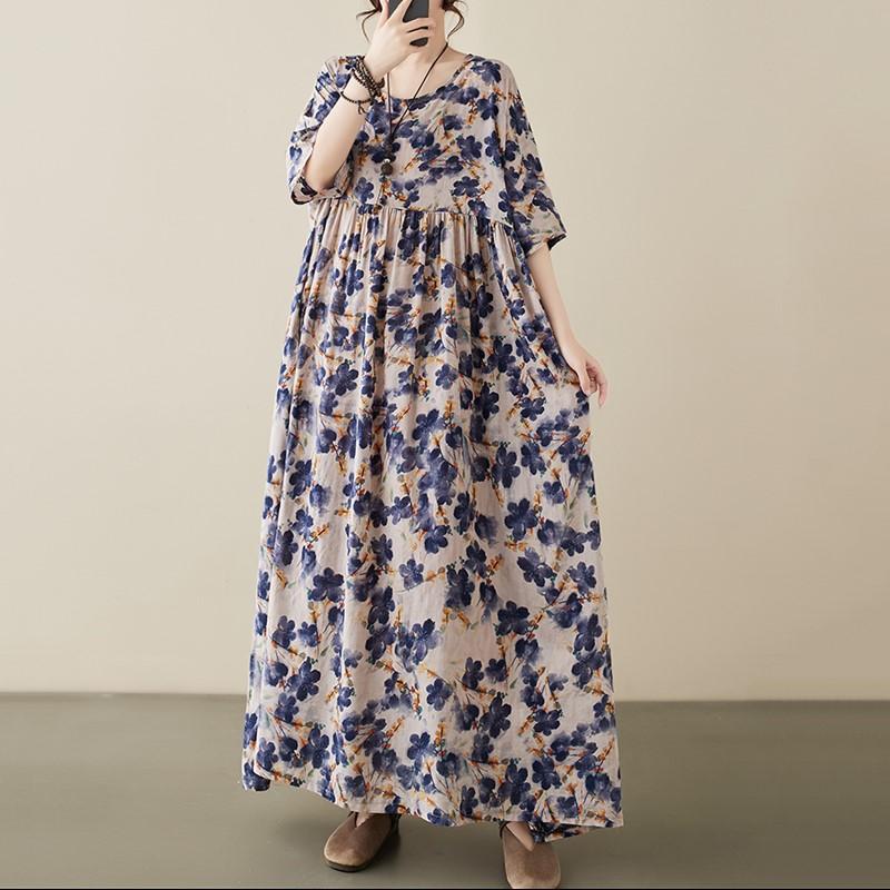 Новые платья из хлопка с короткими рукавами больших размеров и цветочным принтом для женщин, повседневные свободные длинные летние платья
