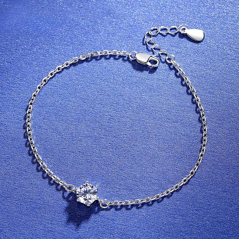 Женский браслет из стерлингового серебра 925 пробы, универсальный классический браслет из муассанита с шестью когтями в корейском стиле, пустые серебряные украшения