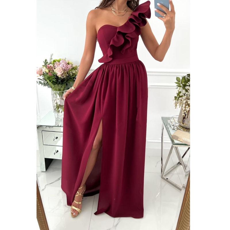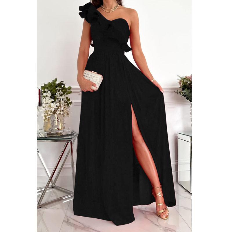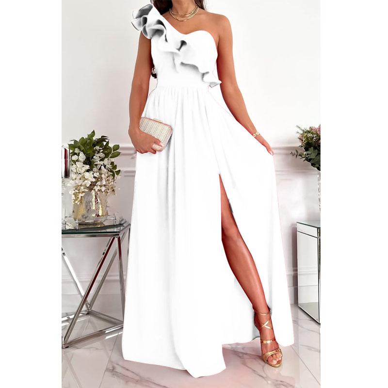 Женское модное повседневное платье макси без рукавов, элегантное длинное платье с разрезом, кружевное вечернее платье
