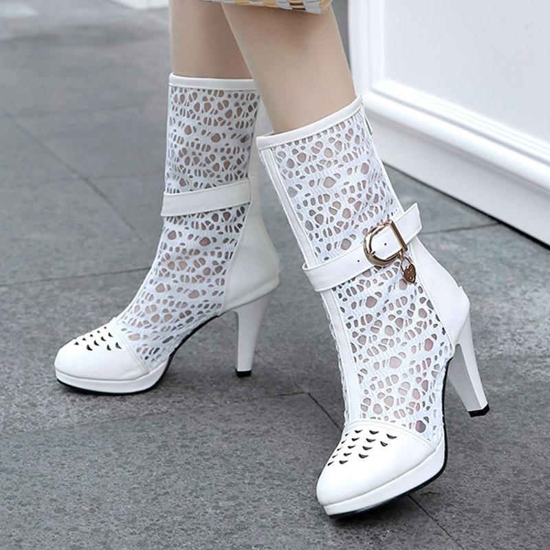 Q/женские короткие сапоги на высоком каблуке, сексуальная водонепроницаемая платформа, большие классные ботинки на тонком каблуке с полыми отверстиями — купить товар онлайн с бесплатной доставкой по всему миру!