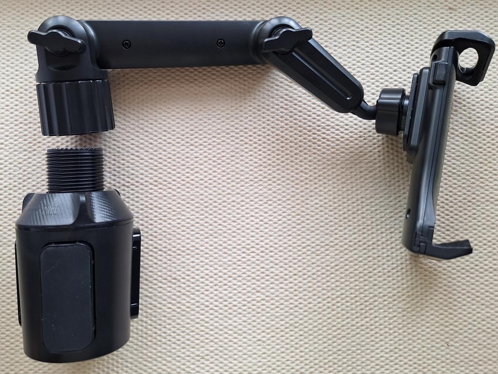 Автомобильный держатель телефона. Крепится и регулируется под размер подстаканника, держится очень прочно. Шарнирами можно регулировать необходимый изгиб. Регулируется для большого телефона, чтобы закрепить по высоте, есть 2 маленькие кнопки по бокам. Лично мне не хватает ещё держателей по бокам, т.к. думаю, что тяжёлый телефон на плохой дороге или крутом повороте может упасть. Рекомендую водителям, у которых подстаканники находятся спереди. На 1-м видео продавца чудесно показана установка.