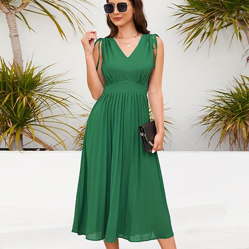 Женское летнее бандажное платье без рукавов с V-образным вырезом, однотонное шифоновое цельное платье — купить товар онлайн с бесплатной доставкой по всему миру!