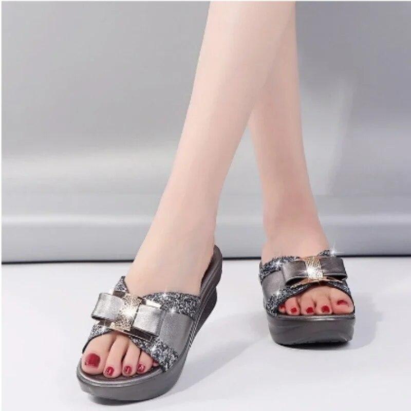 2024 летние женские модные тапочки, женские модные шлепанцы на платформе и высоком каблуке, удобные сандалии на танкетке