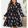 Женское платье больших размеров с V-образным вырезом и принтом на талии с длинными рукавами