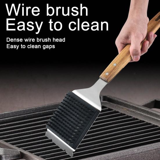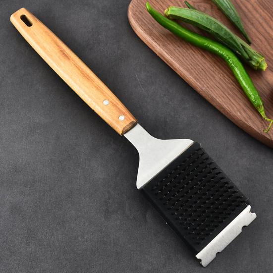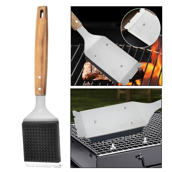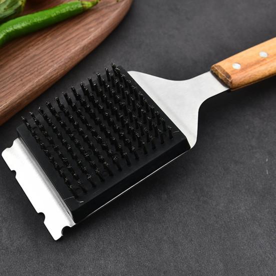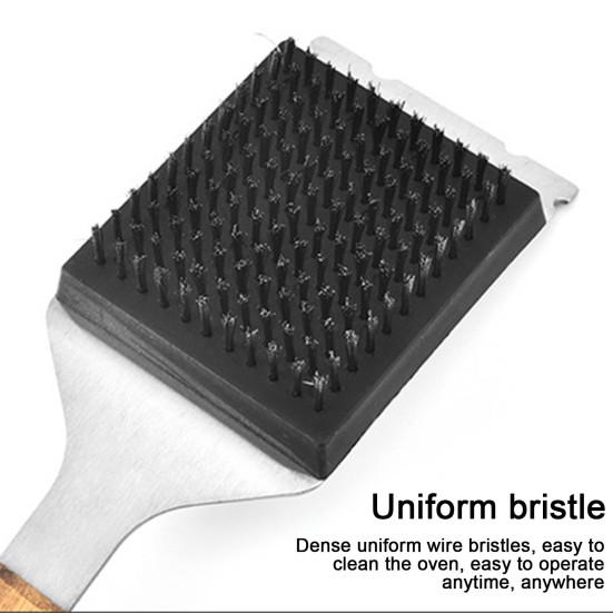 Щетка для барбекю имеет усиленную деревянную ручку, которую нелегко сломать.; Стальная проволока насадки щетки утолщена и усилена, а эффективность очистки выше.