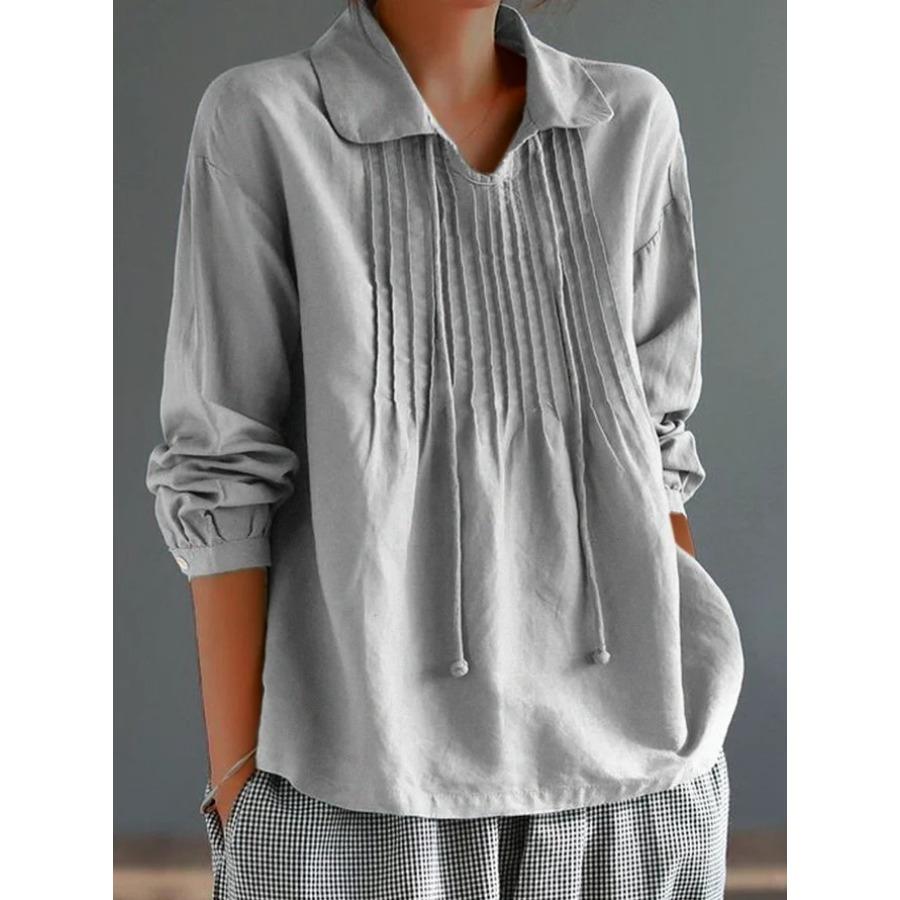 Женская хлопково-льняная блузка на весну и осень, белая, зеленая, синяя, свободный верх, плиссированные блузки с воротником с лацканами и длинными рукавами — купить товар онлайн с бесплатной доставкой до всему миру!