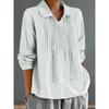 Женская хлопково-льняная блузка на весну и осень, белая, зеленая, синяя, свободный верх, плиссированные блузки с воротником с лацканами и длинными рукавами