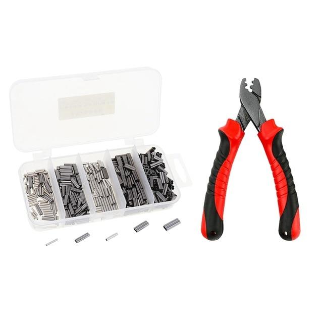 1x рыболовные обжимные клещи и 500 шт./компл. одинарные и двойные 5 размеров, смешанные обжимные втулки для лески, медная трубка